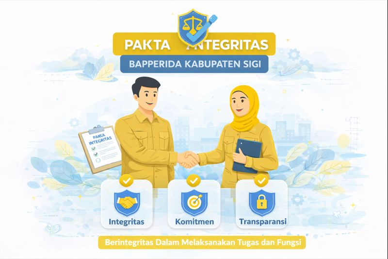 Melalui Pakta Integritas, BAPPERIDA Kabupaten Sigi menegaskan komitmen untuk berperan aktif dalam upaya pencegahan dan pemberantasan korupsi serta tidak terlibat dalam perbuatan tercela dalam bentuk apa pun. Seluruh aparatur diharapkan menjalankan tugas secara profesional, transparan, objektif, dan akuntabel sesuai dengan ketentuan peraturan perundang-undangan yang berlaku.